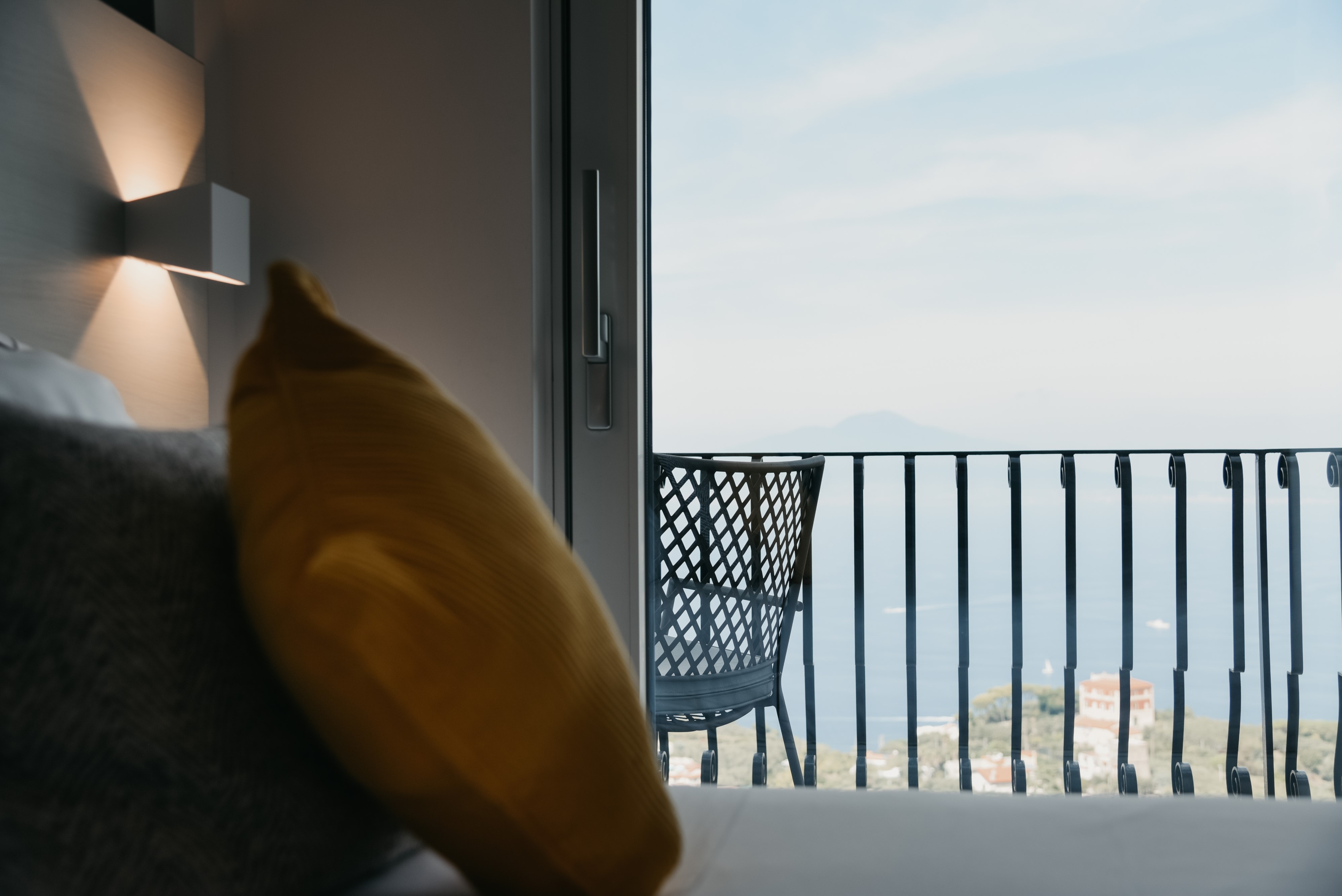 All the spaces are panoramic and has a direct access to various terracing where you can enjoy a postcard-like landscape with Vesuvius rising above the gulf and reflecting in the sea, which in this area, is a deep blue.